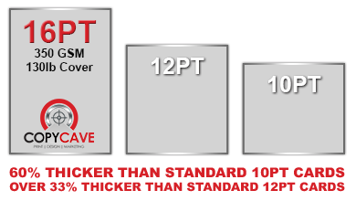 Premium 16pt business card stock is quite thick, much thicker than the standard 10pt or 12pt cards you will find at most local print shops.